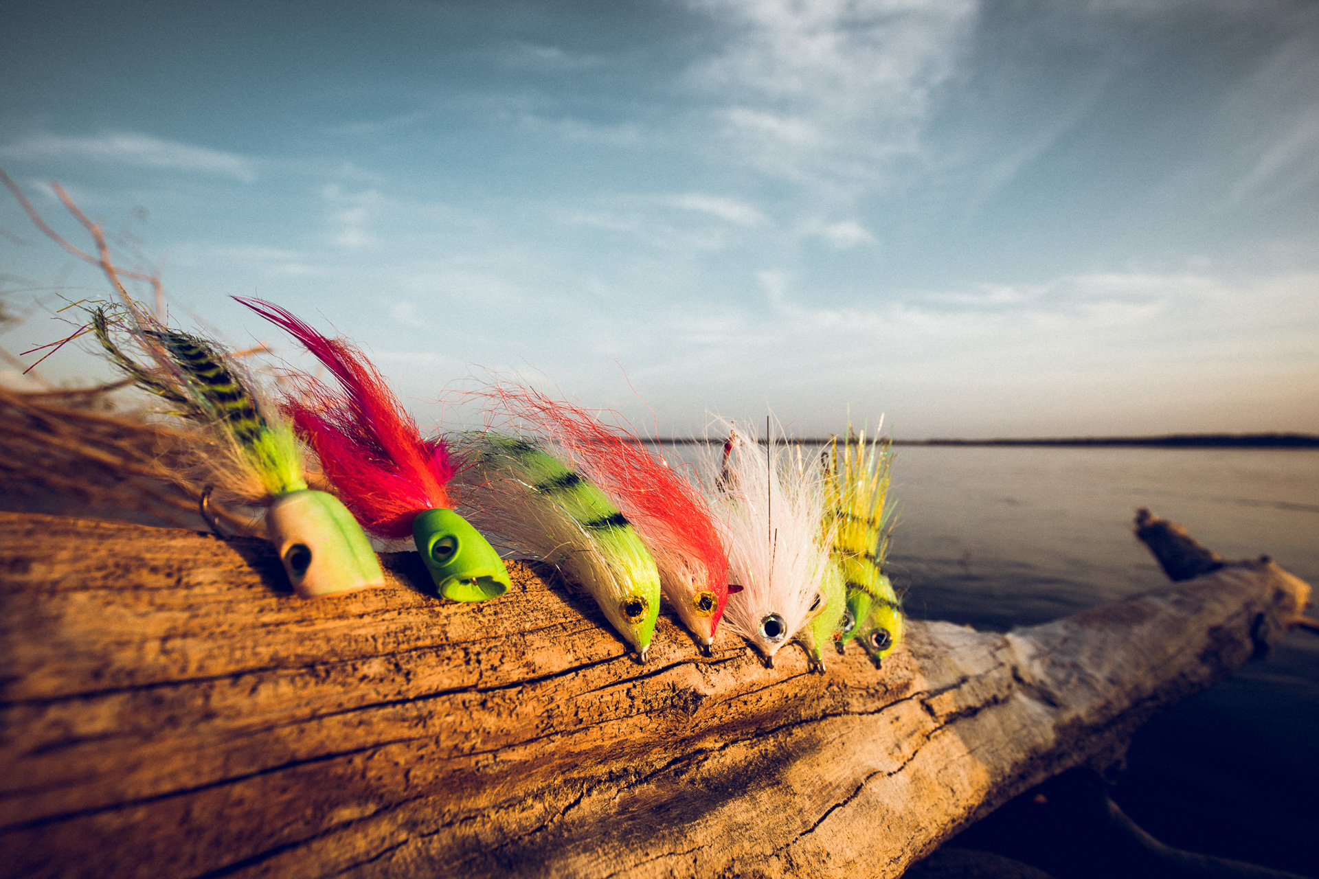 - Popper / topwater flies are a must for those moments when the fish are active on the surface. Explosive strikes in the morning or evening are unforgettable.