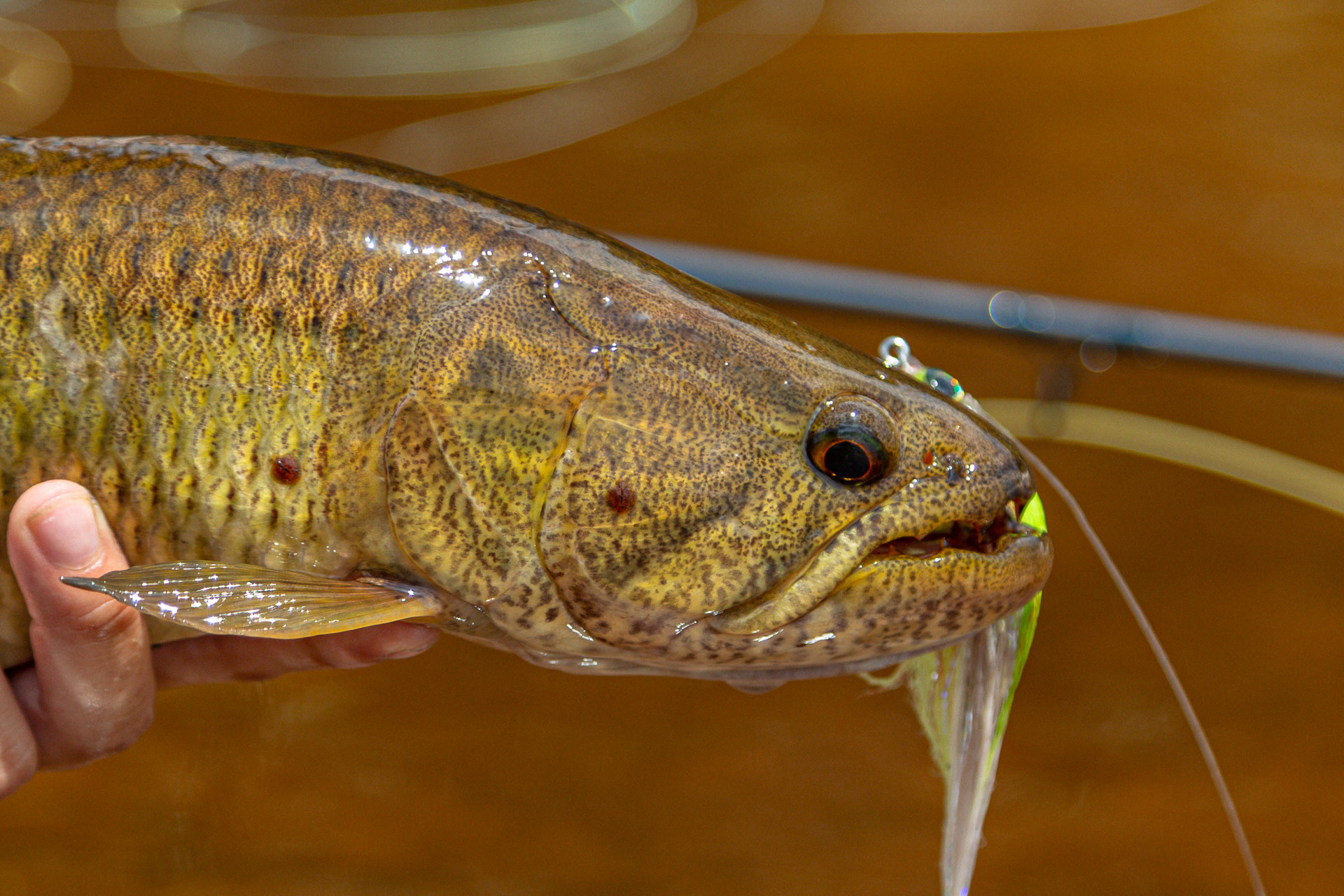 - Flies with large, sharp hooks (e.g. #3/0 to #4/0) and robust materials to withstand the teeth and power of the fish.
