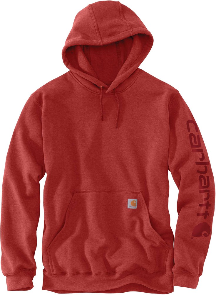 Since 1889, Carhartt has been making rugged, durable and functional clothing for hardworking men and women who must brave the harshest conditions. This long-sleeve hoodie proudly displays the classic Carhartt logo on the sleeve. The traditional cotton blend makes this sweatshirt a flexible companion whether you're going through the day, on the couch, or at your favorite river. Here, Carhartt combines the durability the brand is known for with the cozy comfort of a hoodie. The medium-firm cotton blend offers plenty of room to move, and you can pull the hood down low on your face for even more comfort.