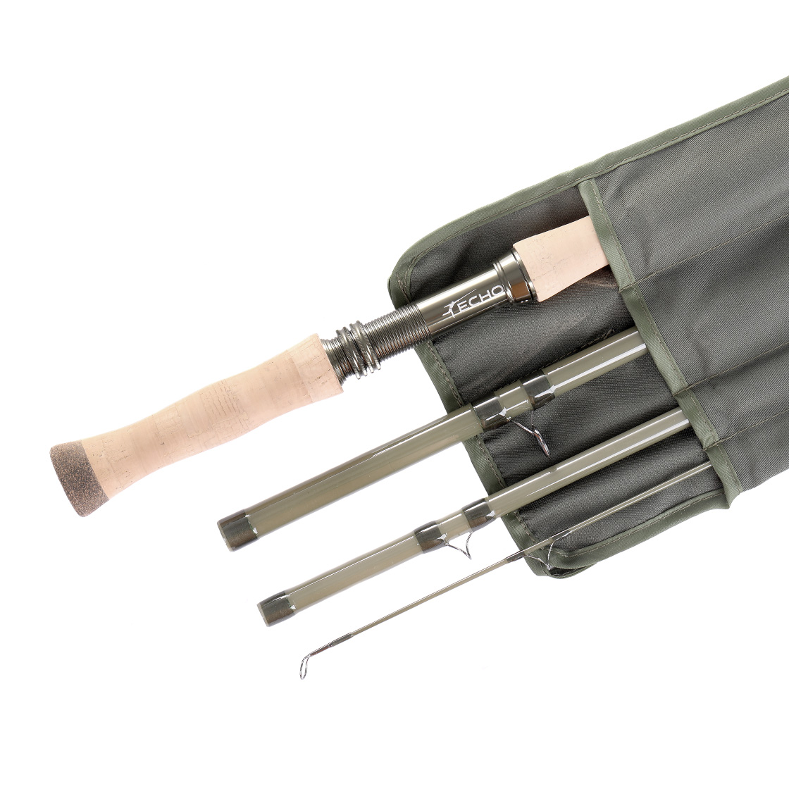The Echo Fiberglass Trout Spey is a two-handed rod made of high-quality fiberglass with a deep-loading, continuous action - just as you would expect from a real glass rod. The olive green blank runs harmoniously through the entire design of the rod and can even be found in the matching rod tube. Black windings and elegant chrome rings complete the harmonious overall look. The black reel seat is framed by elegant hand parts made of premium cork, and two lock nuts on the reel seat guarantee a firm hold on the reel - all day long. The rod tube included in the scope of delivery is also made of fiberglass and fits perfectly into the overall picture.