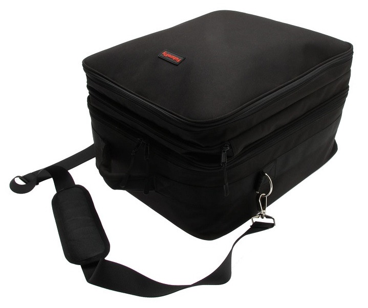 The highlight of this bag is its ring binder with removalble inlays allowing you to take out materials bundled and ordered. The inlays feature a mesh front so you can see the materials within in a glance. Further, the rubberized back allows you to clean the bags if need be. A storage system with four additional meshed zipper compartments offers room for bits and pieces. Another large compartment for large capes or your notebook can be found in the middle of the bag where it lies savely protected. The spacious main compartment can be devided with the included velcro-devider and a hard plastic cover protects your vise or tying lamp. Durable and waterproof nylon fabric on the outside as well as high wquality YKK zippers ensure a long lifespan.