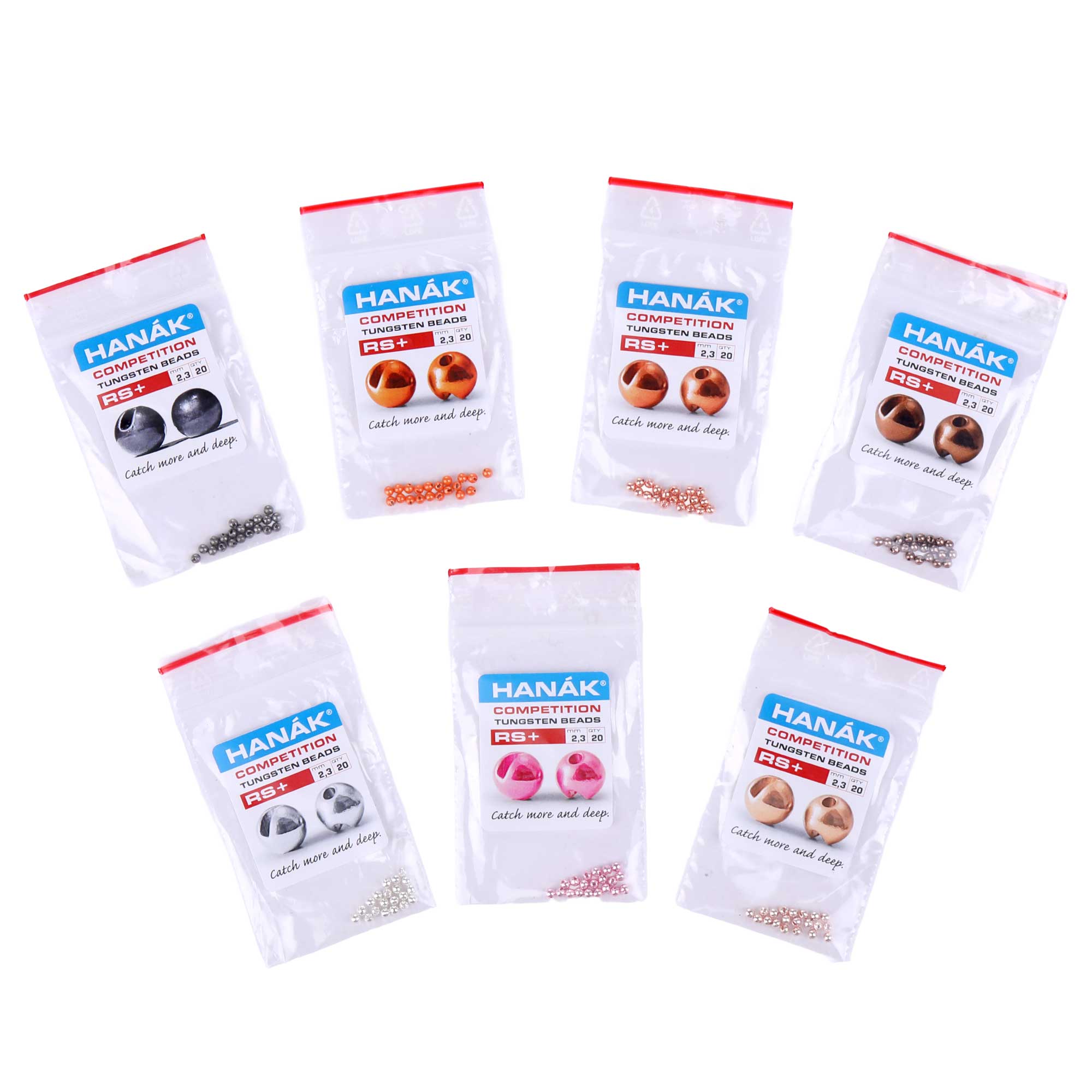 The RS+ beads can be used on many different hooks, but they work particularly well on Hanak RS hooks, as the beads are optimally matched to the hook shape. This ensures perfect balance and maximum efficiency when fly fishing.