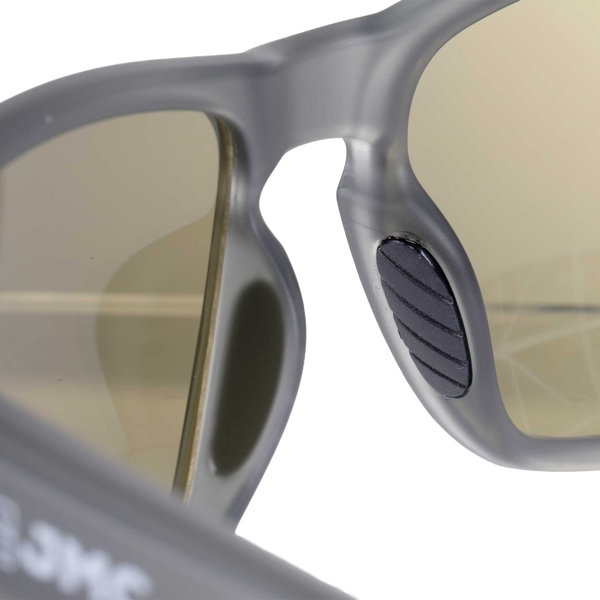 - Yellow/amber photochromic lens for improved contrast in diffuse light