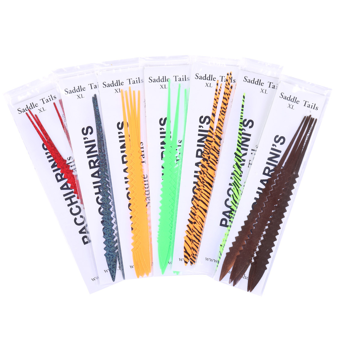 If you're looking for a cool way to add more action to your pattern in the water and give it a striking splash of color, then the Saddle Tails XL by Pacchiarini are just what you need!