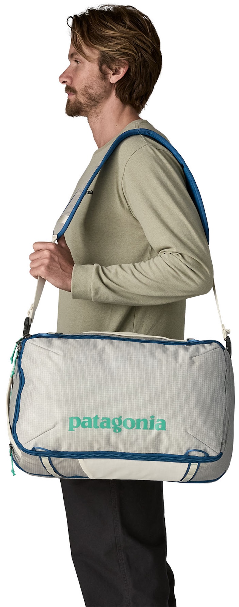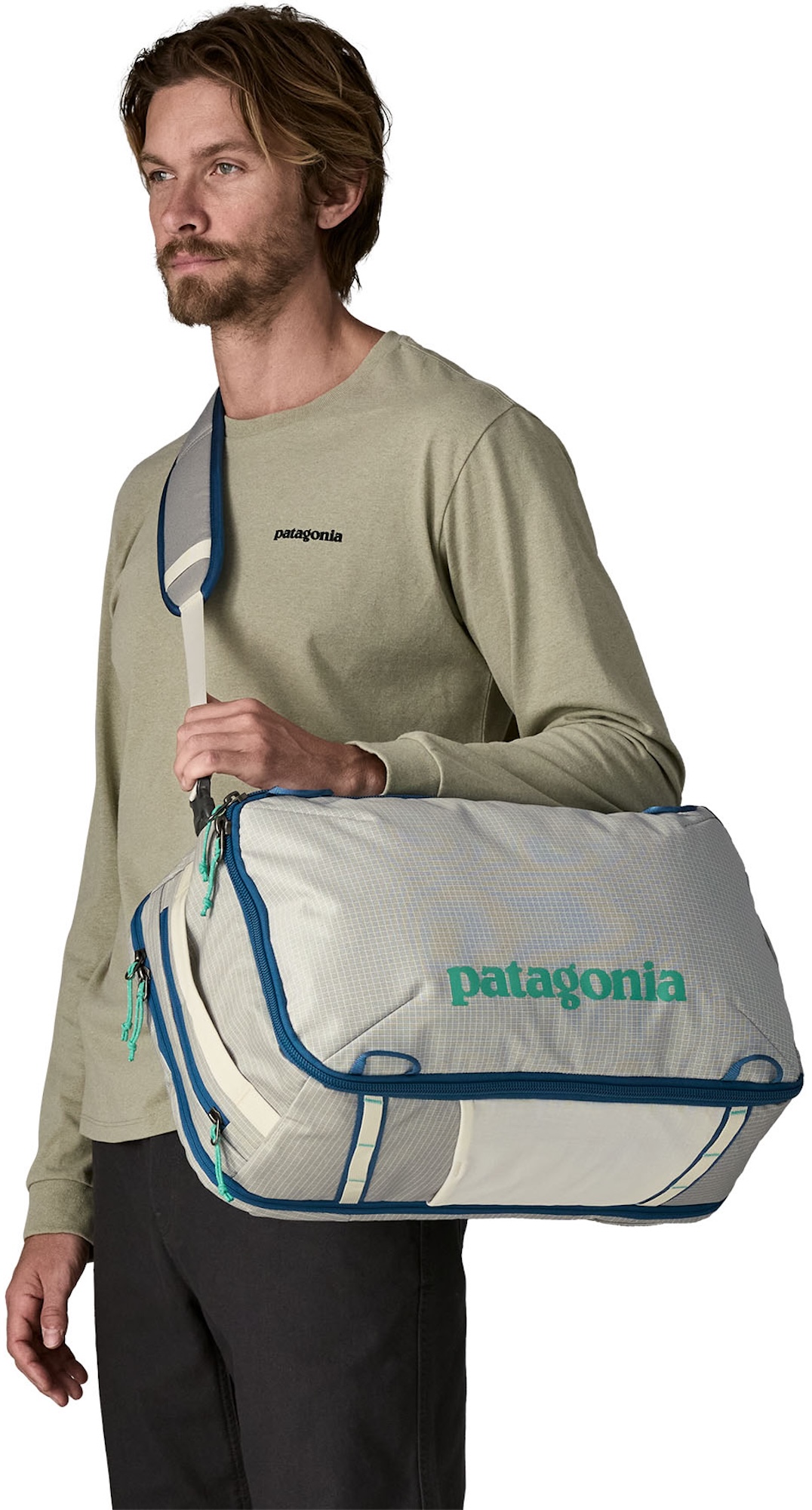 With many small compartments, mesh and zip pockets, as well as a spacious main compartment, the Patagonia bag offers many possibilities to store things in an organised way. The MLC also has a laptop compartment with a zip that meets TSA requirements. The various carrying options of the MLC Black Hole are just as versatile as the interior. The bag naturally has a large strap so that the MLC can be carried like a sports bag, as well as two shoulder straps that offer the option of carrying the MLC as a rucksack and a strap loop on the back. The belt loop offers the option of attaching the MLC to the handle of the Wheeled Duffel from Patagonia, as well as other travel bags with an extendable handle. This is particularly practical when travelling, as you always have one hand free while carrying two bags. The MLC also fulfils most airline hand luggage requirements.
