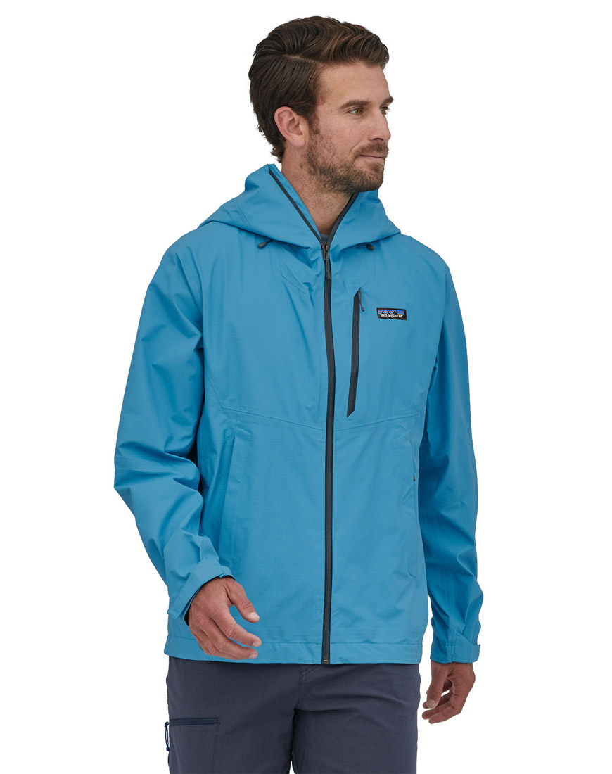 The wide range of features of the Patagonia Granite Crest Jacket includes a two-way adjustable hood with visor. The hood is completely waterproof and can be adjusted in two directions to ensure good visibility with or without headwear even in poor visibility conditions. On the front, the jacket offers a full-length zip and a practical chest pocket with waterproof zips to protect small items. The two welted handwarmer pockets are set slightly higher, so you can wade deeper or keep your hands warm even though you're wearing a backpack. There are two-way waterproof zips under the arms for ventilation. The drawcord at the hem can be easily adjusted and the arm cuffs can be individually adjusted with Velcro. The minimal pack size of this functional jacket means you can stow it in the left pocket. Very practical for on the go and trips where you have to manage with little luggage.