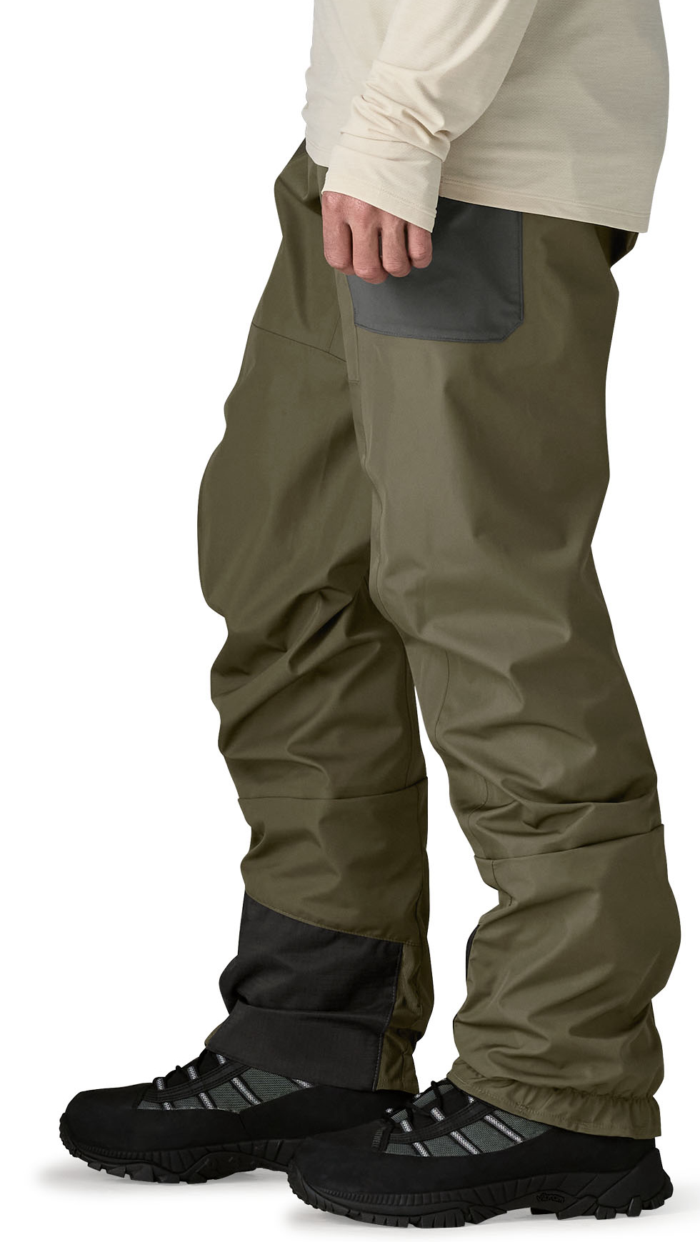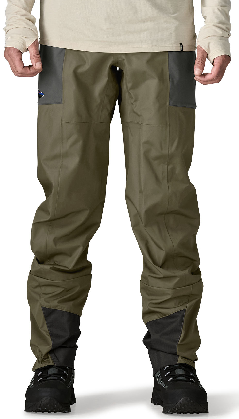 The Patagonia Men's Swiftcurrent Traverse Wading Pants are robust and versatile wading trousers designed for fishing trips, warm weather conditions and shallow waters. Made from a four-layer H2No® Performance Standard fabric, they offer a waterproof and breathable protective layer with a durable water repellent finish without added PFAS. The elasticated waistband ensures a comfortable, adaptable fit and makes them easy to put on and take off, while the cut with pre-shaped crotch and legs ensures freedom of movement when wading. Two stretchy thigh pockets with drainage holes keep small items close to hand and protected from splashing water, and reinforced protective strips on the ankles increase abrasion resistance in high-wear areas. Anatomically shaped, sock-like ankle socks made of comfortable material support all-day comfort in the water. These waders are manufactured in a Fair Trade Certified™ factory, which stands for responsible production conditions.