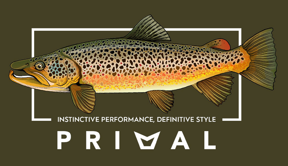 - Large brown trout logo on the back