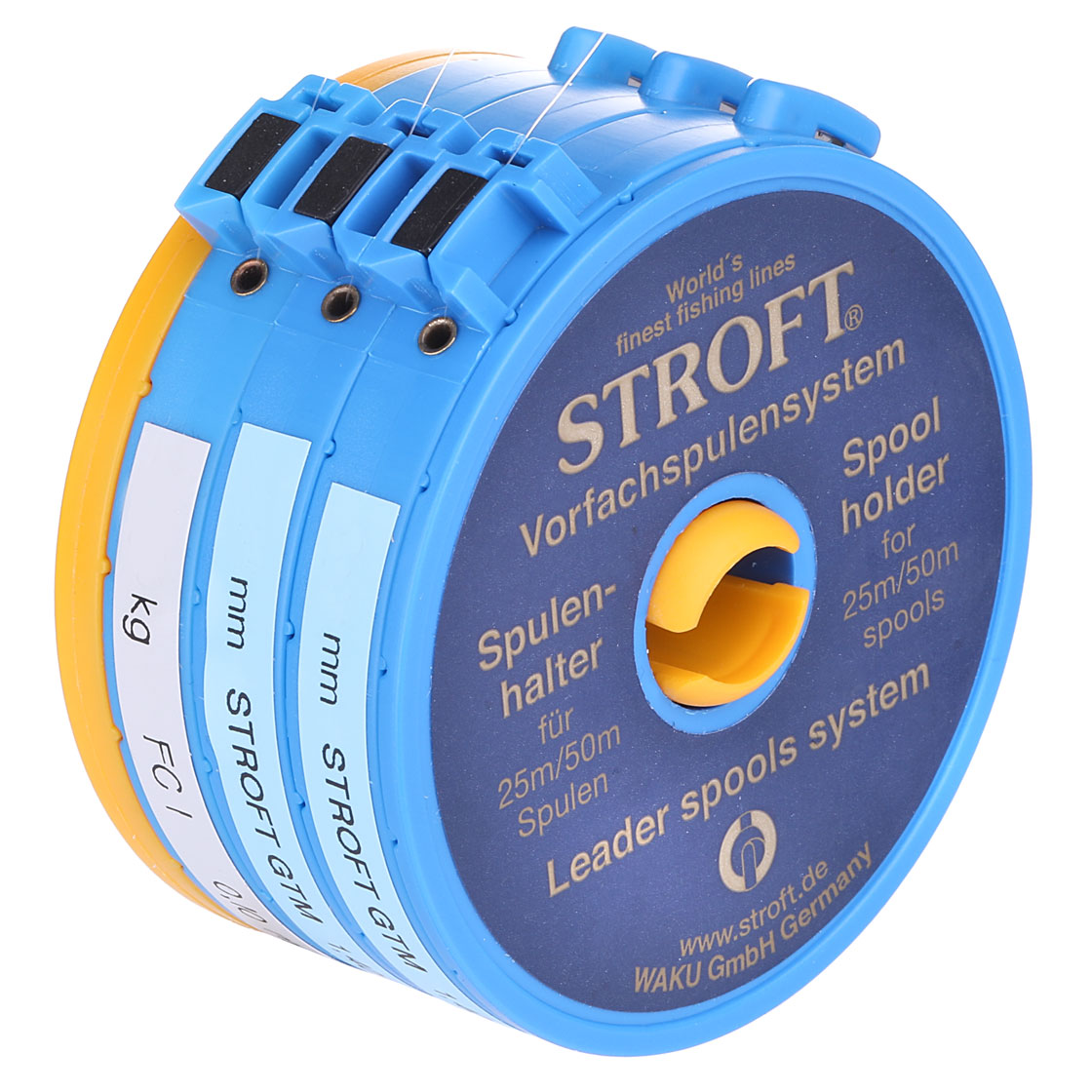 - Stroft leader spool holder for 3 leader spools