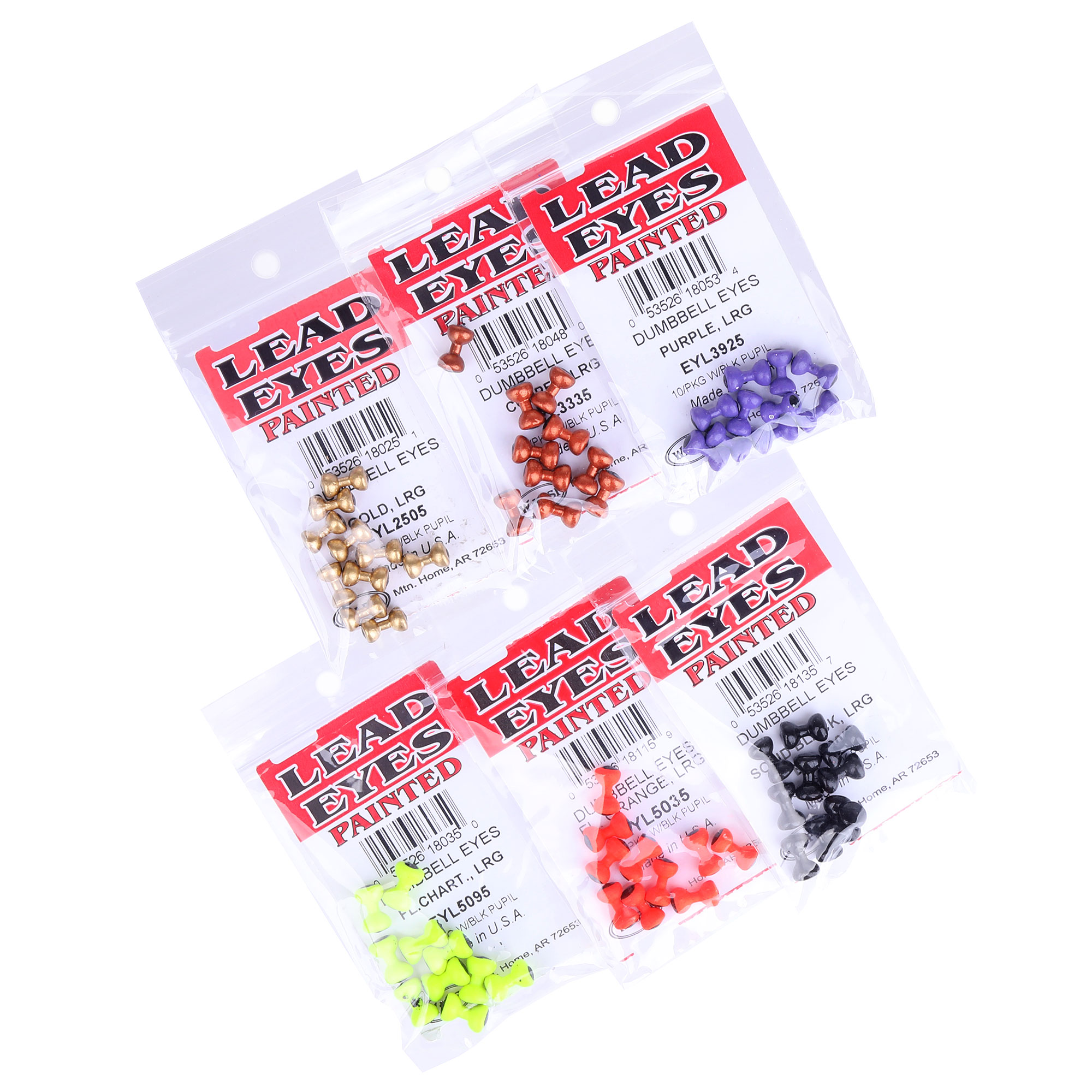 Wapsi Dumbbell Eyes Painted offer precise weight and eye-catching colour accents for flies of all kinds. The Dumbbell Eyes ensure fast sinking, a stable position in the water and a realistic look. Ideal for fly tiers who want to effectively weight hooks of all kinds, streamers and larger nymphs.