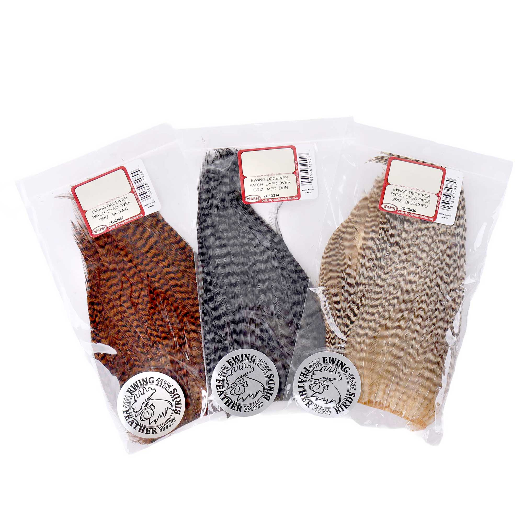 The Wapsi Ewing Grizzly Deceiver Patch Premium Quality consists of high-quality, longer and flexible genetic hackle feathers in the classic grizzly look. These feathers are specially designed for larger fly patterns such as streamers, deceivers and baitfish imitations and ensure a lively action in the water.