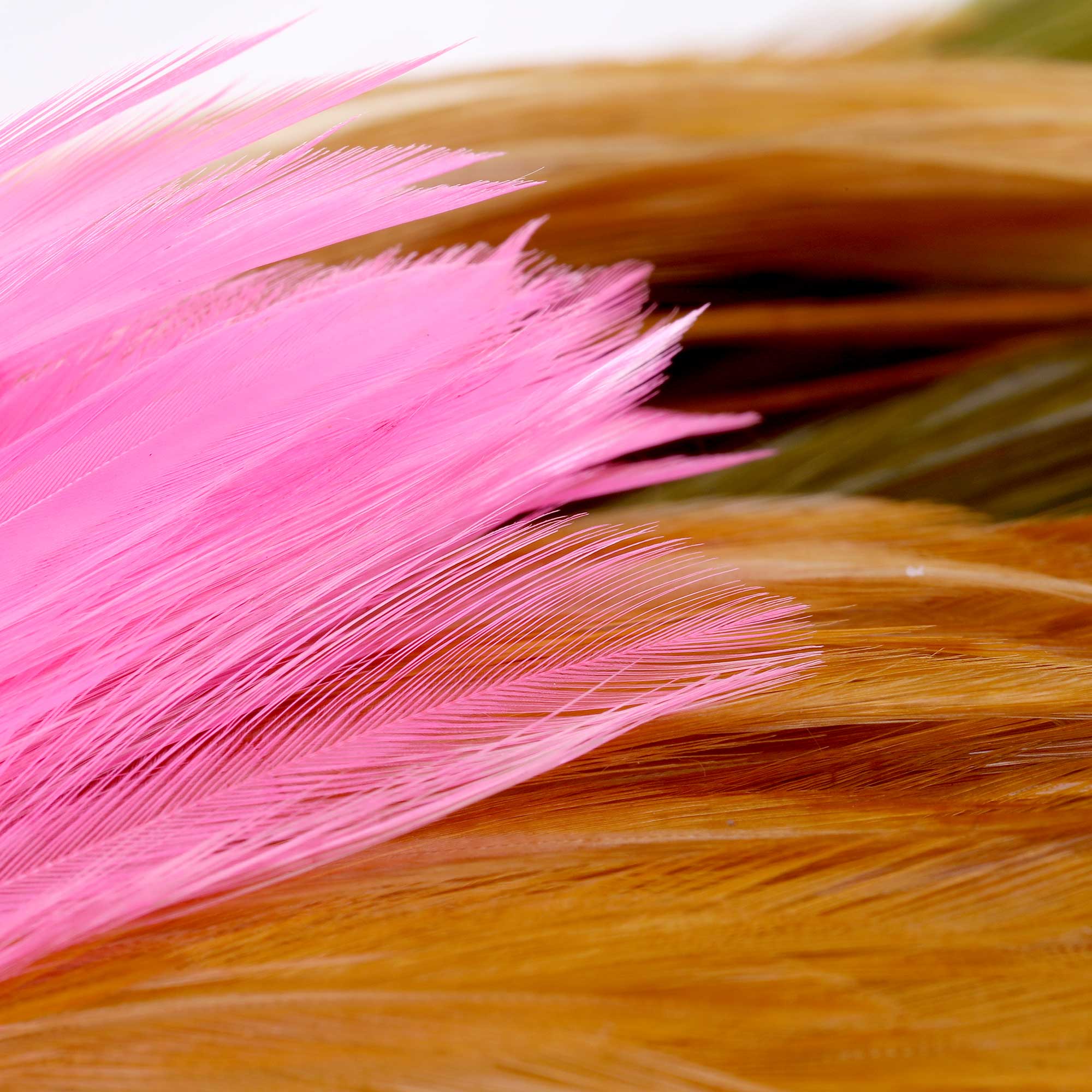 • Classic hackle feathers from the neck area