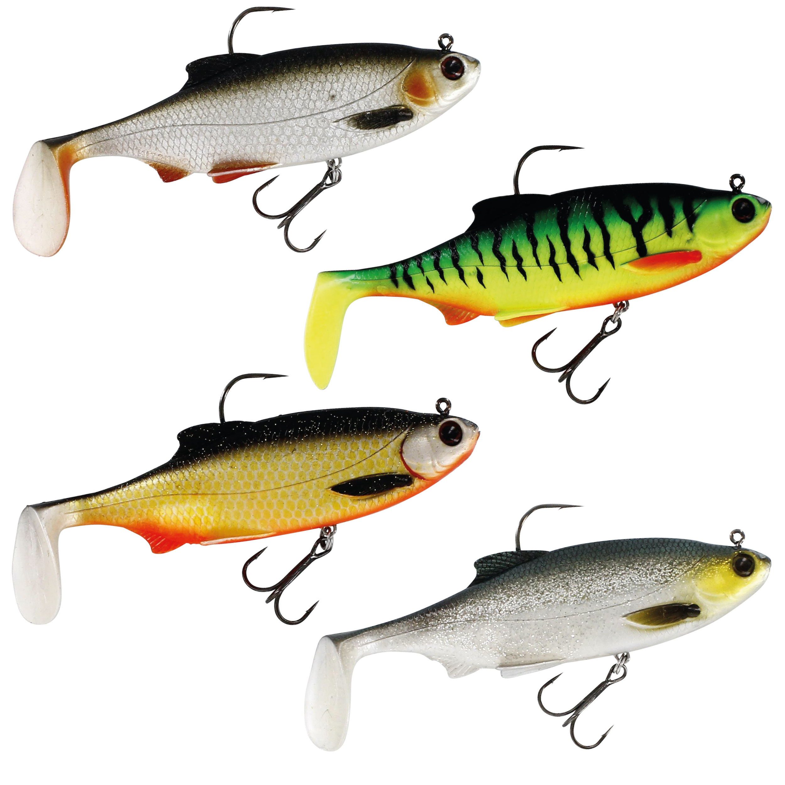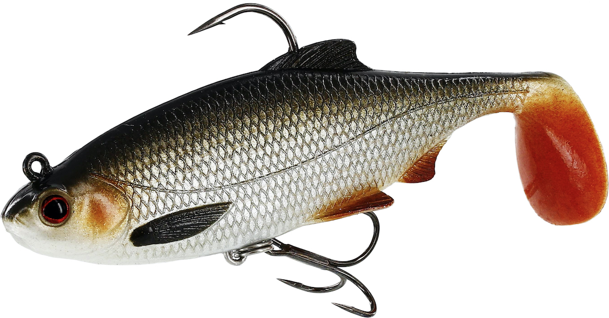 Westins Ricky the Roach in the R N`R version (rigged and ready) is a popular, pre rigged and catchy softlure. It comes in many versions and colours, which makes it possible to cover many areas of spin fishing. It is a very voluminous and big bellied softlure, which has established itself especially in pike fishing. It can be fished nice and slow and due to its shad tail it also appeals to predators that are not in the immediate vicinity.